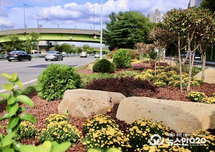 공단은 운전자들이 도심 속에서도 가을의 정취를 느낄 수 있도록, 서울 진입로와 교통 정체가 잦은 4개 구간에 국화, 황금사철, 삼색조팝 등 다채로운 가을 식물과 경관석을 활용해 ‘매력정원’을 조성했다.