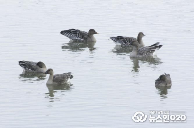 (뉴스인020 = 김성길 기자) 의왕도시공사가 운영 중인 조류생태과학관은 최근 왕송호수 일대에서 실시간 생태환경 모니터링 과정에서 환경부 지정 멸종위기야생생물 2급인 큰기러기(Anser fabalis) 다수 개체를 관찰했다고 밝혔다.
