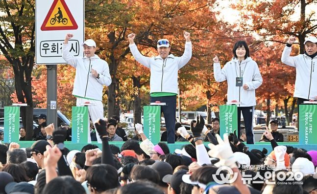 (뉴스인020 = 김성길 기자) 오세훈 서울시장은 2일 07시 30분 상암월드컵공원(마포구 상암동)에서 열린 ‘2025 JTBC 서울마라톤’ 출발식에 참석해 대회 개최를 축하하고 출전 선수들의 안전한 완주를 응원했다.
