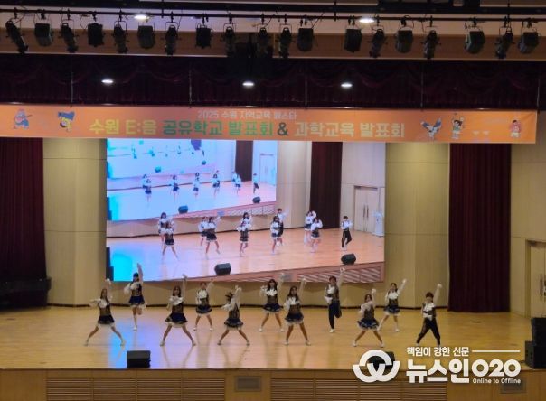 수원 E:음 공유학교 성장나눔 발표회에서는 학생기획형 프로그램 운영사례 발표와 함께 학생들이 직접 준비한 치어리딩·한국무용·밴드 공연이 진행되어 현장에 활기를 더했다.