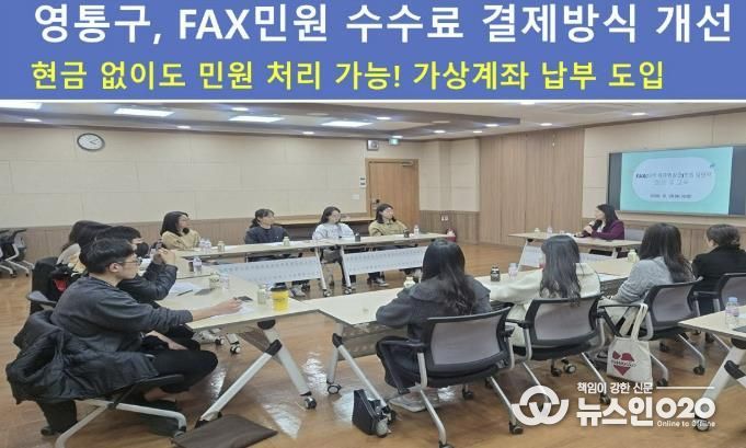 (뉴스인020 = 기자) 수원시 영통구가 지난 31일 시민의 민원 편익을 높이기 위해 FAX민원 수수료 결제방식을 전면 개선했다. 앞으로 사립대학교 졸업증명서 등 FAX민원 발급 시에도 현금 외에 가상계좌를 통한 납부가 가능해져, 현금 미소지로 인한 불편이 크게 줄어들 전망이다.