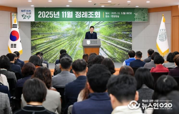 (뉴스인020 = 김성길 기자) 담양군은 3일 군청 면앙정실에서 정철원 군수를 비롯한 공직자 160여 명이 참석한 가운데 11월 정례조회를 열었다.