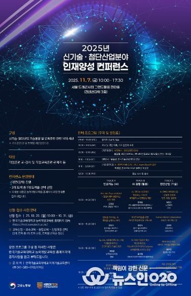 (뉴스인020 = 김성길 기자) 한국기술교육대학교(KOREATECH·총장 유길상)는 7일(금) 서울드래곤시티 한라홀에서 직업훈련교·강사 및 직업교육훈련 관계자 350여 명이 참석한 가운데 ‘2025년 신기술·첨단산업분야 인재양성 콘퍼런스’를 성황리에 개최했다.
