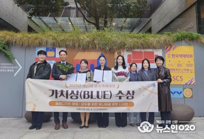 (뉴스인020 = 김성길 기자) 시흥시는 ㈜비에이컴퍼니와 함께 추진한 거북섬 경관브릿지 원형광장과 보행로 일대에 조성한 ‘모두를 위한 유니버설 광장 디자인’이 지난 11월 8일 (사)한국색채학회가 주관한 ‘2025 한국색채대상’에서 블루영역 가치상을 수상했다고 밝혔다.