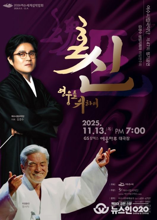 (뉴스인020 = 김성길 기자) 여수시는 오는 11월 13일 오후 7시 GS칼텍스 예울마루 대극장에서 ‘제47회 여수시립국악단 정기연주회’를 개최한다.