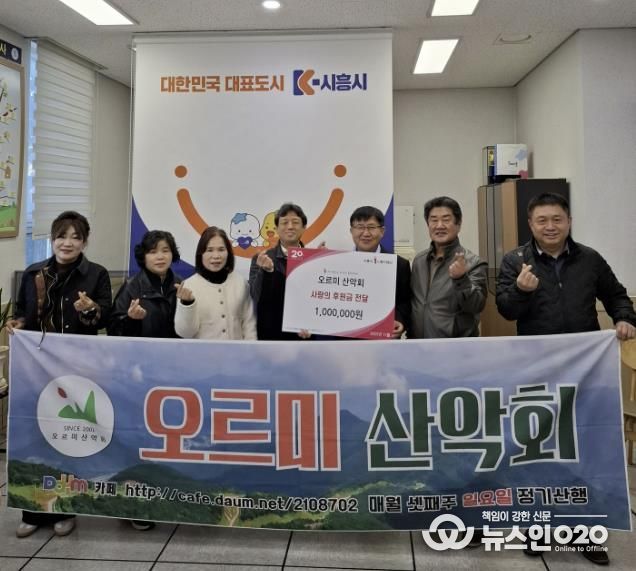 (뉴스인020 = 김성길 기자) 시흥시 매화동 오르미 산악회는 지난 11월 10일 매화동 행정복지센터를 방문해 지역 내 저소득 취약계층을 위한 후원금 100만 원을 전달했다.