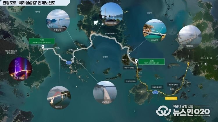 (뉴스인020 = 김성길 기자) 전라남도는 국토교통부가 최초로 추진한 ‘2025년 대한민국 관광도로’ 지정 평가에서 여수 백리섬섬길(국도77호선)이 전남 첫 노선으로 지정됐다고 밝혔다.