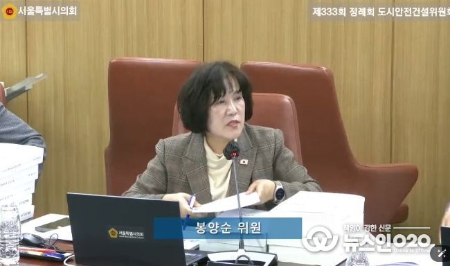 (뉴스인020 = 김성길 기자) 서울특별시의회 봉양순 의원(더불어민주당, 노원3)은 12일 진행한 2025년 도시안전건설위원회 도시기반시설본부 행정사무감사에서 어울림체육센터 건립공사와 관련해 반복되는 민원과 지반침하 등 안전 문제를 집중 질의하며, 공사관리와 품질개선을 강력히 촉구했다.
