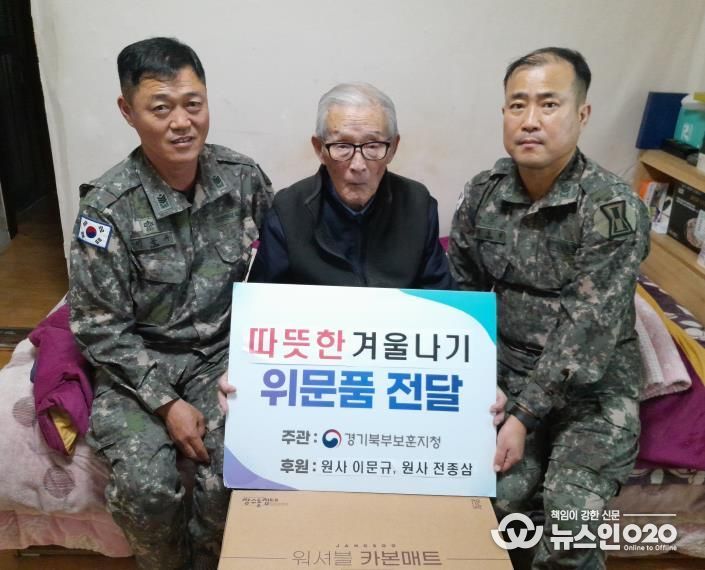 (뉴스인020 = 김성길 기자) 경기북부보훈지청은 11월 7일, 1군단 원사 전종삼 ·기갑여단 원사 이문규와 함께 동절기를 앞두고 난방이 필요한 국가유공자 어르신들을 방문해 후원품을 전달하고 위문했다고 밝혔다.