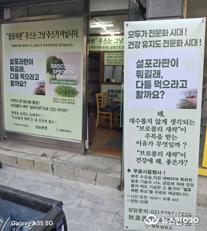 특히, 이번에 개설한 '브로콜리 새싹 전문 1호점'에서는 직접 재배하여 특화된 방법으로 발효하여 300 나노화한 브로콜리 새싹 주스를 오픈 기념으로 지역 주민들을 위하여 이달 한 달 동안 매주 수요일 오전 10시부터 오후 4시까지 50명에 한하여 무료로 제공하는 시음 행사도 개최한다.