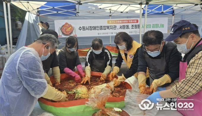 (뉴스인020 = 기자) 수원시 장안구 조원1동은 지난 15일 사랑을 만드는 사람들 봉사회가 조원1동 취약계층을 위해 김장김치 10kg 50개를 조원1동 행정복지센터에 기부했다고 전했다.