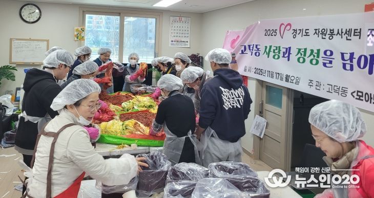 이번 행사는 ‘모아모아행복방’에서 경기도 자원봉사센터에서 실시한 '2025년 도민이 전하는 자원봉사 2차 지원사업'에 선정되어 보조금 600만 원을 지원받아 추진했으며, 모아모아행복방 소속 회원들과 자원봉사자 등 20명이 참여했다. 이틀간 정성스럽게 담근 김장김치는 고덕동 관내 취약계층 170가구에 전달됐다.