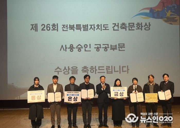 (뉴스인020 = 김성길 기자) 전북특별자치도는 18일 도청 공연장에서 ‘전북건축, 올림픽 유치와 함께 세계를 디자인하다’를 주제로 제26회 전북특별자치도 건축문화제를 성대하게 개최하고, 건축문화상 시상식을 진행했다고 밝혔다. 올해 행사에는 노홍석 행정부지사를 비롯해 전북건축문화진흥연합회 관계자, 건축 전문가 등 300여 명이 참석해 자리를 빛냈다.