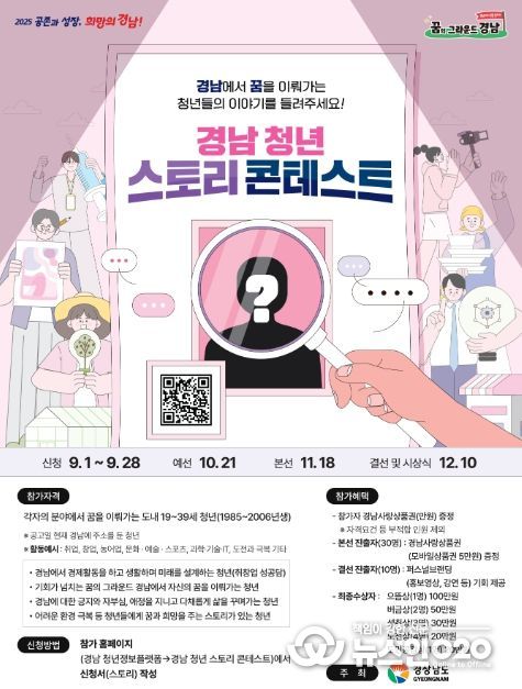 (뉴스인020 = 김성길 기자) 경상남도는 ‘제1회 경남청년 스토리 콘테스트’ 결선 진출자 10명을 선정했다고 18일 밝혔다.