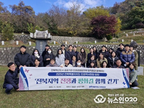 (뉴스인020 = 김성길 기자) 전북특별자치도는 11월 19일 전북혁신도시 공공기관 인권경영협의체 임직원들과 함께 ‘전북지역 인권역사현장 탐방’을 실시했다고 밝혔다.