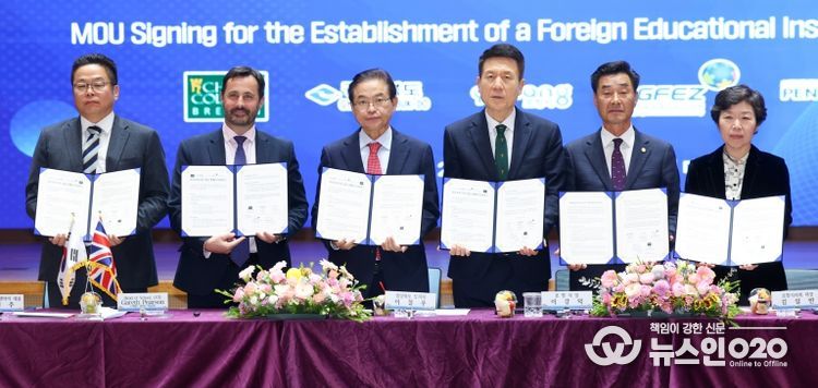 경상북도와 포항시는 20일, 포항시청 대회의실에서 영국 왕립 명문학교인‘크라이스트 칼리지 브레콘(Christ College Brecon, 이하 CCB)’과 국제학교 설립을 위한 MOU를 체결했다.