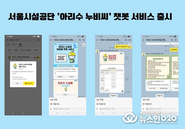 (뉴스인020 = 김성길 기자) 서울시설공단은 상수도 공사에 필요한 법령, 절차, 제출서류를 모바일에서 빠르게 확인할 수 있는 ‘아리수 누비씨 카카오톡 모바일 챗봇 서비스’를 출시했다고 21일 밝혔다.