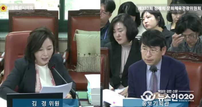 (뉴스인020 = 김성길 기자) 서울시의회 문화체육관광위원회 김경 의원은 11월 4일 제333회 정례회 홍보기획관 대상 행정사무감사에서 서울시가 운영하는 온라인 홍보 채널의 최근 성과를 집중적으로 점검하며, “짧은 기간 안에 상당히 큰 성과를 달성했다”며 “서울시 공공소통의 새로운 기준을 만들고 있다”고 평가했다.