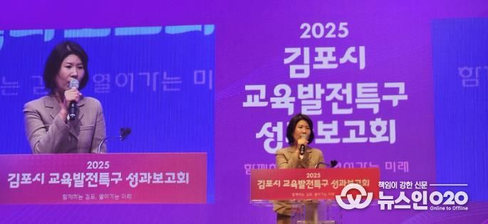 (뉴스인020 = 김성길 기자) 경기도김포교육지원청은 2025년 11월 21일 14시, 고촌아트홀에서 김포 관내 교원, 학부모, 시민을 대상으로 ‘2025 김포 교육발전특구 성과보고회’를 개최했다. 이번 성과보고회는 2024년에 교육발전특구로 선정된 김포시의 2년차 성과를 시민들과 공유함으로써 맞춤형 돌봄 및 교육을 위한 김포교육지원청과 김포시청의 사업을 홍보하고 미래 비전을 제시하고자 마련됐다.