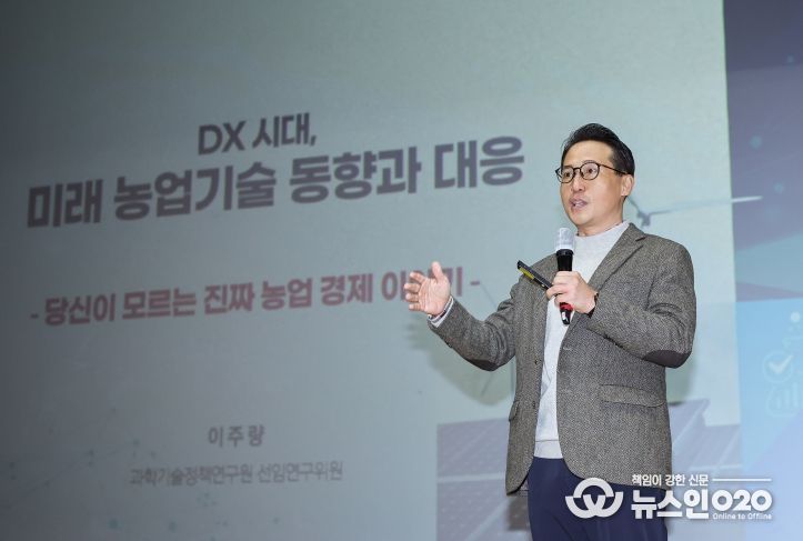 이번 행사는 전북도가 보유한 농생명산업 기반을 디지털 기술과 결합해 글로벌 경쟁력을 갖춘 미래 농업체계로 전환하기 위한 비전 공유 차원에서 마련됐다. 이날 특강에는 농업기술 및 정책 분야 전문가인 이주량 과학기술정책연구원 선임연구위원이 초청돼 ‘DX 시대, 미래 농식품 기술동향과 과제’를 주제로 강연을 진행했다.