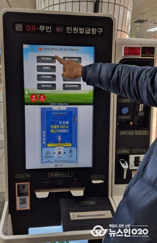 (뉴스인020 = 김성길 기자) 서울 강북구는 주민 편의 향상을 위해 무인민원발급기에서 제공하는 가족관계등록증명서 발급 서비스를 확대 운영한다고 밝혔다.