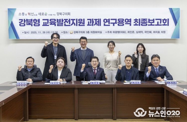 (뉴스인020 = 김성길 기자) 강북구의회 의원연구단체인 ‘강북형 교육발전지원 연구회’ (대표의원 허광행)는 지난 11월 26일 의회 3층 의원회의실에서 최종보고회를 열었다.
