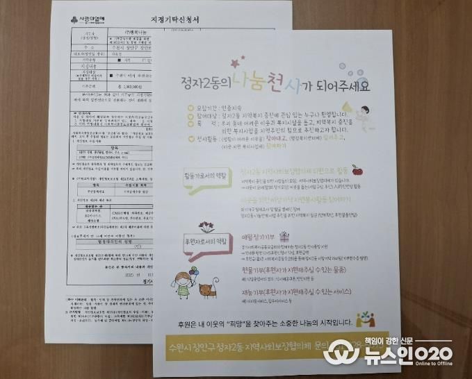 (뉴스인020 = 기자) (주)행복나눔은 지난 25일, 정자2동 행정복지센터에 어려운 이웃을 위해 써달라며 1백만원을 기부했다.