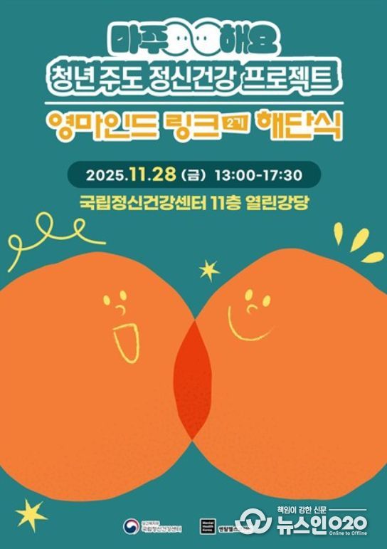 (뉴스인020 = 김나현 기자) 보건복지부 국립정신건강센터(센터장 곽영숙)는 11월 28일 오후 1시, 국립정신건강센터(서울 광진구 소재) 11층 열린강당에서 정신건강 서포터즈‘영마인드 링크 2기’해단식을 개최했다.