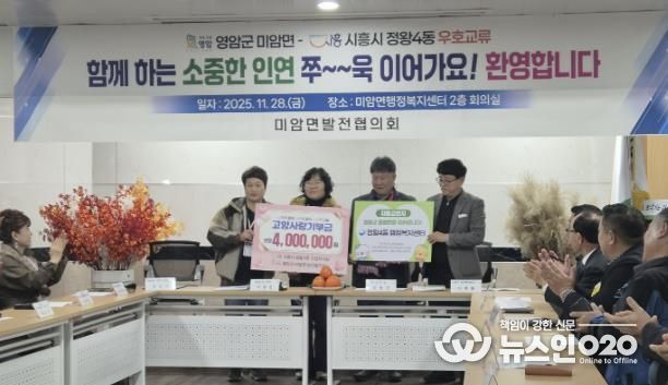 (뉴스인020 = 김성길 기자) 시흥시 정왕4동 행정복지센터는 지난 11월 28일부터 29일까지, 자매결연지인 전남 영암군 미암면과 함께 1박 2일 교류 활동을 진행했다. 이번 방문은 주민자치회를 중심으로 지역 간 이해를 넓히고 상호 협력을 강화하기 위한 취지로 추진됐다.