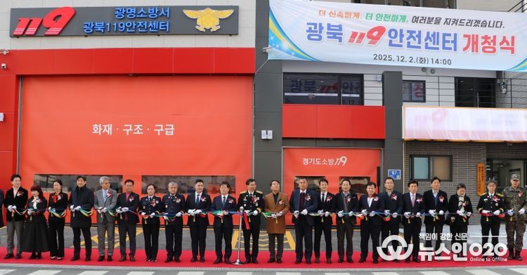 (뉴스인020 = 김성길 기자) 광명소방서는 12월 2일 오후 2시, 신축된 ‘광북119안전센터’ 신청사(광명시 광이로 67)에서 개청식을 개최했다. 행사에는 박승원 광명시장, 광명시의장 등 주요 기관·단체 관계자를 비롯해 광명소방서 직원, 광명의용소방대원 등 약 100여 명이 참석했다.