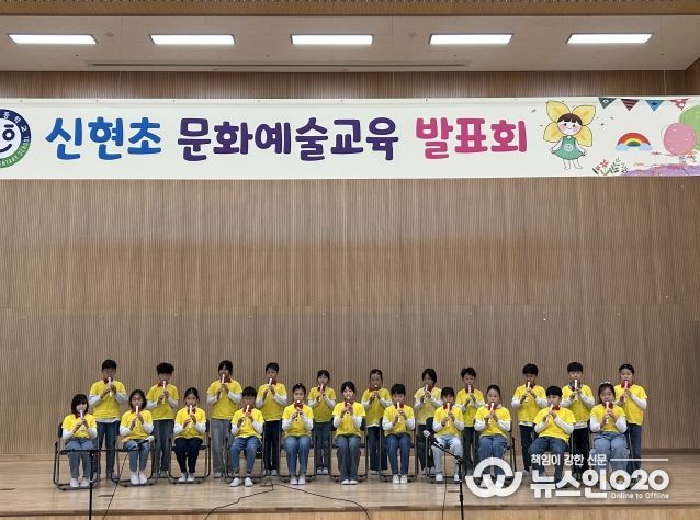 (뉴스인020 = 김성길 기자) 신현초등학교(교장 이현옥)가 2025학년도 2학기 문화예술교육 발표회를 열어 전교생이 한 학기 동안 갈고닦은 미술·음악 성과를 선보였다.