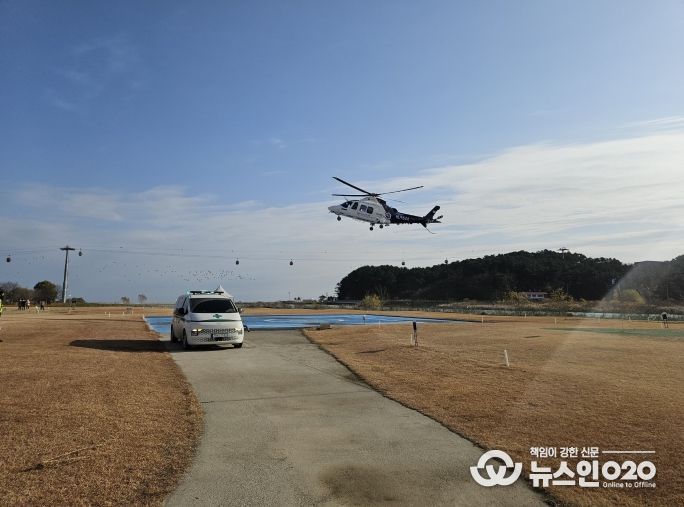 해당 근로자는 어지러움과 흉통을 호소해 울진군의료원에서 검사를 받았고, 심혈관질환 의심 소견에 따라 안동병원 응급 의료진이 탑승한 헬기로 이송되어 현재 회복 중에 있다.