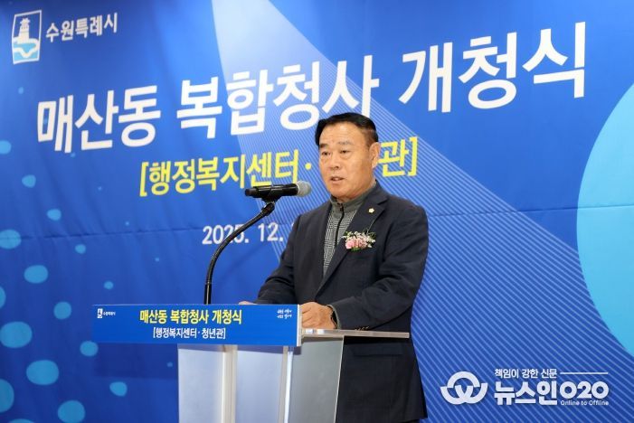 (뉴스인020 = 김성길 기자) 수원특례시의회는 3일, ‘매산동 복합청사(행정복지센터 및 청년관) 통합 개청식’에 참석해 스마트한 도시 서비스와 주민 편의를 한층 높일 새로운 청사의 개청을 축하했다.