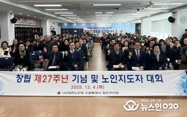 (뉴스인020 = 기자) 대한노인회 수원시장안구지회는 지난 4일 장안구청 대회의실에서 창립 27주년을 기념하는 ‘2025년 노인지도자 대회’를 개최했다.