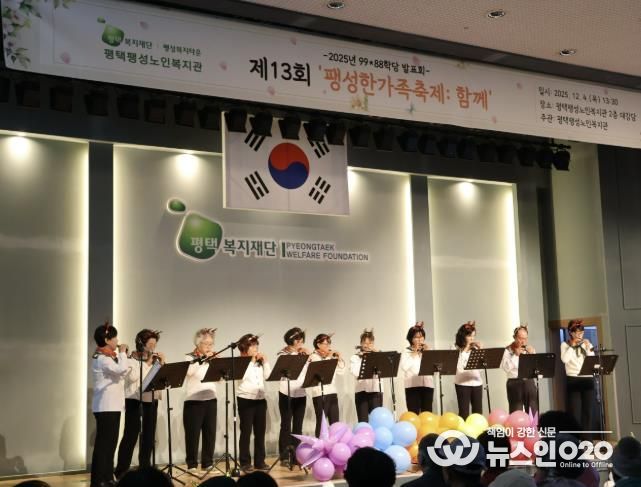 (뉴스인020 = 김성길 기자) 평택팽성노인복지관은 12월 4일 평생교육 및 취미여가지원사업 99*88학당 프로그램 발표회 ‘제13회 팽성한가족축제: 함께’를 성황리에 마쳤다. 이날 행사는 1부 기념식, 2부 발표회로 구성하여 300여명의 어르신들이 함께 참여한 가운데 진행됐다.