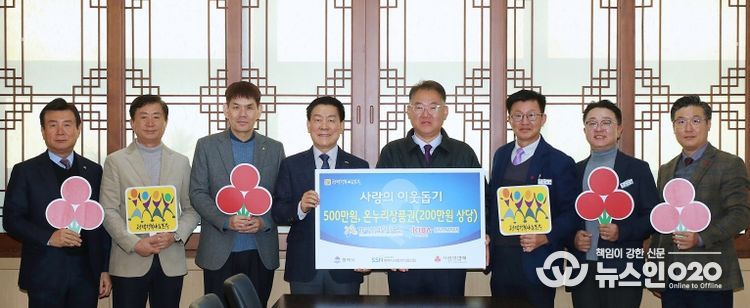 (뉴스인020 = 김성길 기자) (사)포승경영자협의회와 한국산업단지공단은 지난 3일 평택시청 대외협력실에서 평택행복나눔본부에 성금 500만 원과 상품권 200만 원을 전달했다.