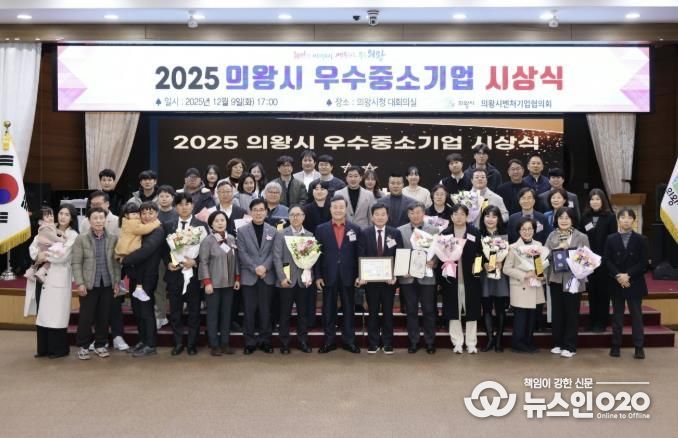 (뉴스인020 = 김성길 기자) 의왕시가 관내 중소기업의 경쟁력을 강화하고 지역경제를 이끌 우수 기업을 발굴·격려하기 위해 ‘2025년 의왕시 우수중소기업’8개사를 선정하고, 12월 9일 시청 대회의실에서 시상식을 개최했다.