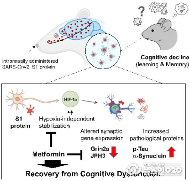 연구를 주도한 국립보건연구원 고영호박사 연구팀(이혜경박사: 1저자)은 “코로나19 감염후 나타나는 인지장애의 병리 기전을 밝히고, 실제 임상에서도 널리 사용되는 메트포르민이 이를 억제할 수 있는 가능성을 제시한 것에 큰 의미가 있다 ”고 밝혔다.