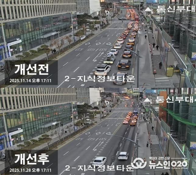 (뉴스인020 = 김성길 기자) 과천시는 지식정보타운 일대의 신호체계를 조정해 출퇴근 시간대(오전 7시~9시, 오후 5시~7시) 교통 정체가 완화된 것으로 확인됐다고 10일 밝혔다.