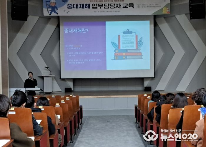 (뉴스인020 = 김성길 기자) 성남교육지원청은 12월 10일 교육지원청 대강당에서‘경기도교육청 중대재해처벌법 업무매뉴얼 개정에 따른 학교 담당자 교육’을 실시했다. 이번 교육은 성남 관내 학교 중대재해 업무 담당자 115명에게 중대재해처벌법 업무 매뉴얼 개정 사항과 실무 대응 방향을 전달했다.
