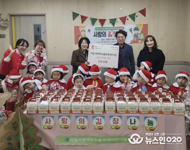 (뉴스인020 = 김성길 기자) 시흥시 능곡동 행정복지센터는 12월 11일 트리플포레어린이집으로부터 관내 취약계층을 위한 김치 50통을 기탁받았다.
