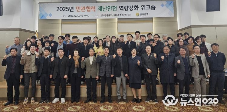 (뉴스인020 = 김성길 기자) 전라남도는 17일 나주 중흥골드스파&리조트에서 2025 민관협력 재난안전 역량강화 워크숍을 열고 지역 대규모 재난 발생시 신속한 대응을 위한 민관협력을 더욱 강화키로 결의했다고 밝혔다.