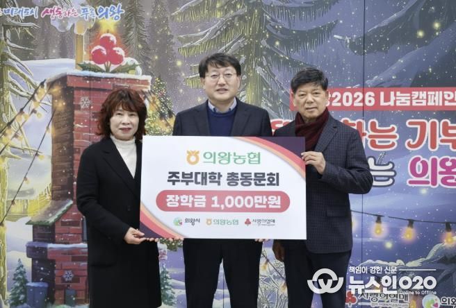 (뉴스인020 = 김성길 기자) 의왕시는 12월 18일 ‘의왕농협주부대학 총동문회가 지역 인재 육성을 위해 장학금 1,000만원을 기부했다고 밝혔다.