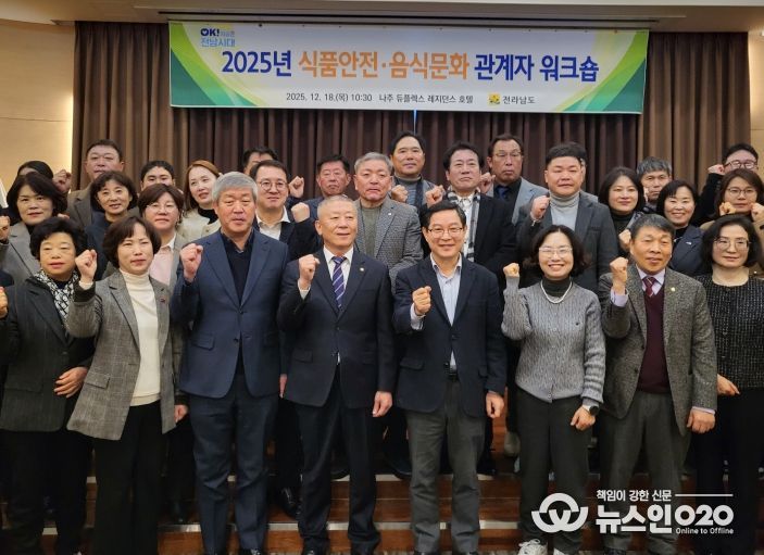 (뉴스인020 = 김성길 기자) 전라남도는 18일 나주 듀플렉스 레지던스 호텔에서 2025년 식품안전·음식문화 관계자 워크숍을 열어 지역사회 건강을 지키고 관광객에게 맛있는 먹거리를 제공하는 품격 있는 음식문화 조성을 다짐했다고 밝혔다.