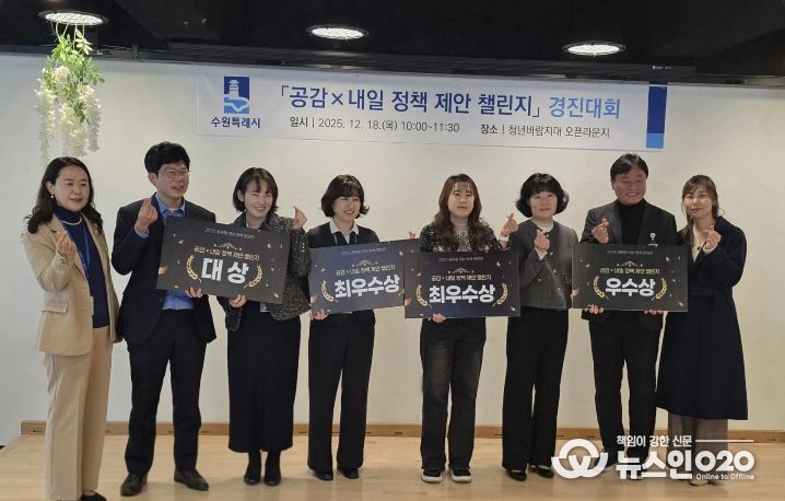(뉴스인020 = 기자) 수원특례시가 개최한 ‘2025 공무원 대상 제안 공모전 '공감×내일 정책 제안 챌린지' 경진대회’에서 ‘신(新)사장 과태료 0원 프로젝트(찾아가는 원산지 안심 컨설팅)’가 대상을 받았다.