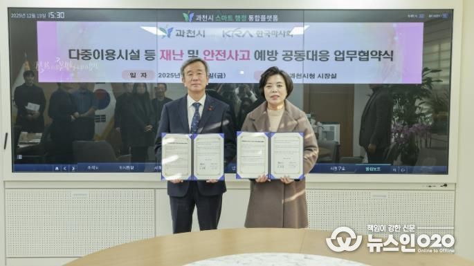 (뉴스인020 = 김성길 기자) 과천시는 지난 19일 한국마사회와 ‘재난 안전 강화를 위한 공동대응’ 업무협약을 체결했다고 22일 밝혔다. 이번 협약은 재난 발생 시 신속한 대응 체계를 마련하고, 지역사회 안전 관리 역량을 높이기 위해 추진됐다.