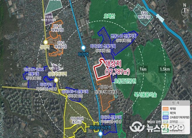 이번 신속통합기획은 과거 주택단지 중심 개발로 시가지와 단절됐던 오패산 녹지축을 미아역(도봉로) 일대까지 확장하고, 입체공원 도입과 사업성 보정계수(1.8) 적용을 통해 총 1,730세대, 최고 35층 규모의 쾌적하고 안전한 주거단지를 조성하는 것이 핵심이다.