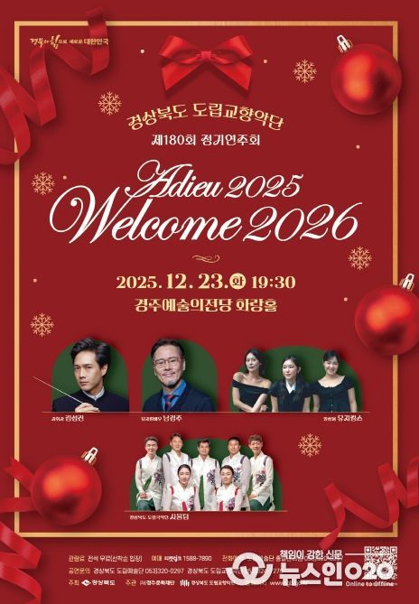 (뉴스인020 = 김성길 기자) 경상북도 도립교향악단이 23일 경주예술의전당 화랑홀에서 제180회 정기연주회 ‘아듀 2025! 웰컴 2026!’를 개최한다.