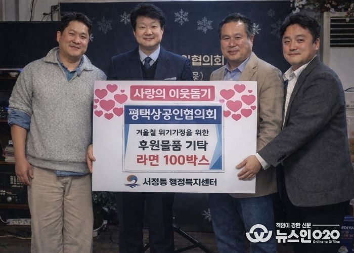 (뉴스인020 = 김성길 기자) 평택시 서정동 행정복지센터는 지난 18일 평택상공인협의회가 겨울철 복지 사각지대에 놓인 취약계층을 돕기 위한 라면 100박스를 기부했다고 밝혔다.