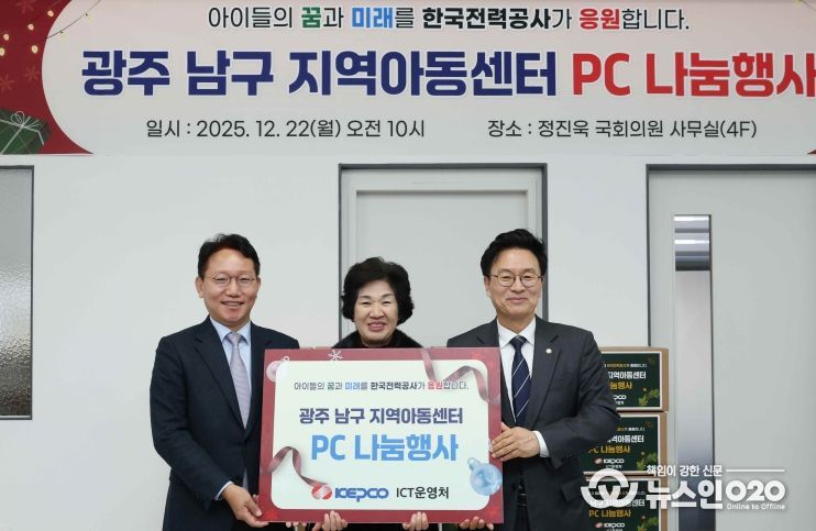 (뉴스인020 = 김성길 기자) 한국전력이 12월 22일 광주 남구 지역아동센터를 대상으로 ‘PC 나눔행사’를 개최했다. 이번 행사는 지역아동센터의 디지털 교육 환경을 개선하고 자원의 효율적 활용을 통한 나눔 문화를 확산하기 위해 마련됐다.